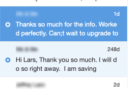 Plus the ‘other threads’ indicator shows how many other threads are in your inbox (the first part) and how many other threads of that contact are archived (the second part). Clicking that badge will show all threads of that particular contact.